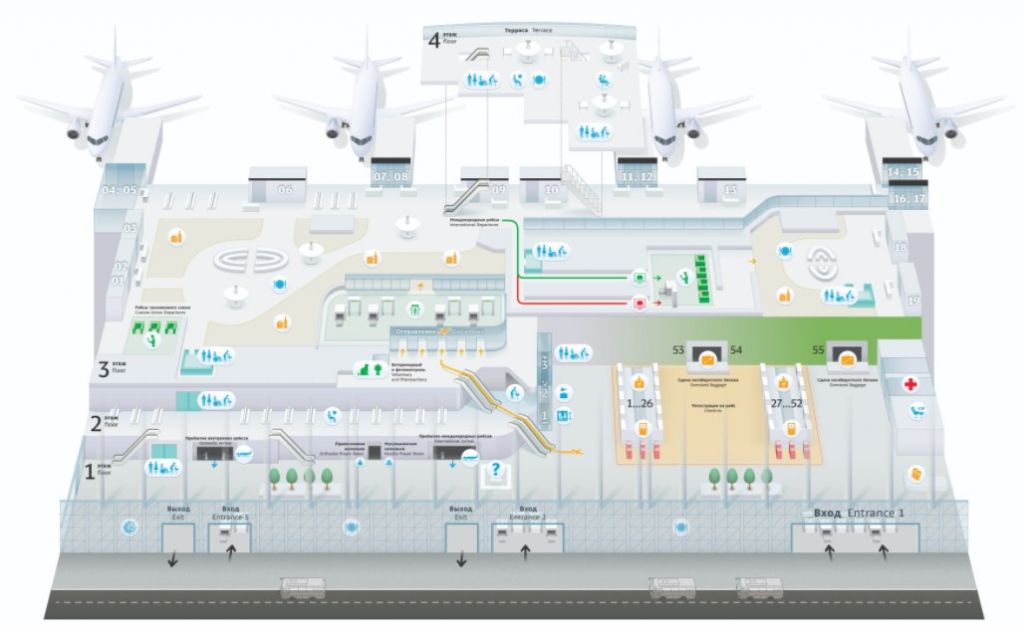 Транспортировку пассажиров к самолетам обеспечивают удобными микроавтобусами. Регистрация ведется всего на нескольких стойках, хотя руководство аэропорта обещает в скором времени расширение всех зон и упразднение больших очередей, на которые так часто жалуются пассажиры.