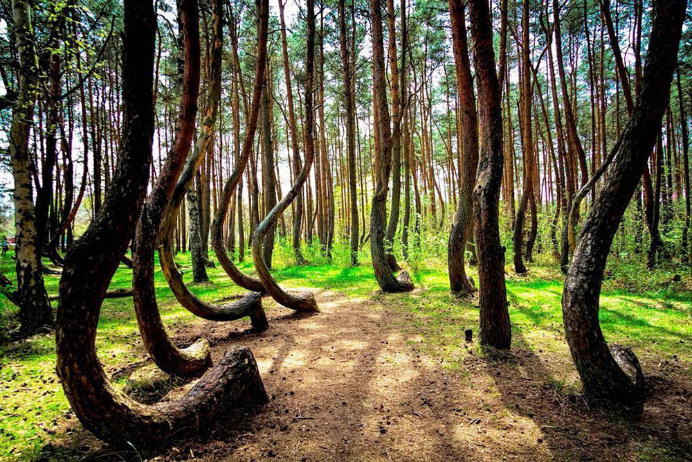 Около 400 сосен в одном из лесов на северо-западе Польши привлекают внимание своим внешним видом. Все деревья имеют одинаковый полукруглый изгиб, который начинается практически у самых корней. Причудливая форма сосен создаёт атмосферу сказочного леса. Точного объяснения, почему деревья приобрели такой вид до сих пор не найдено. Конечно, есть учёные, которые предполагают, что ростки деревьев были повреждены много лет назад, но тогда неясно, почему окружающие деревья всё-таки остались с нормальными стволами.