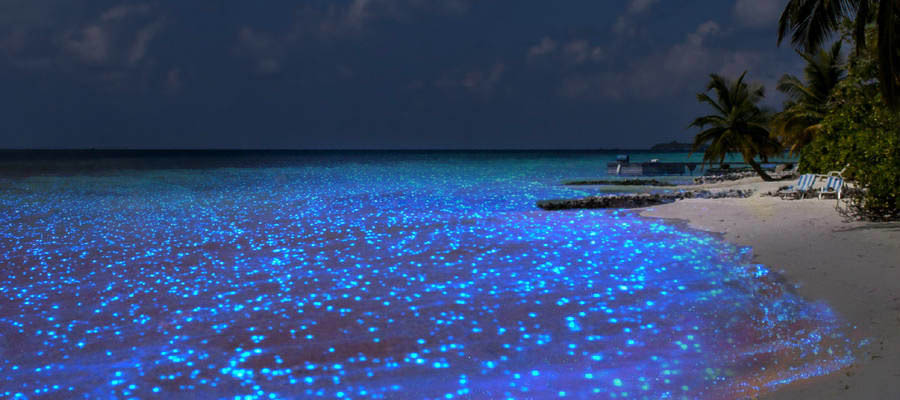 В ночное время остров Ваадху на Мальдивах представляет собой завораживающее зрелище: ярко светящиеся волны набегают на песчаные пляжи и оставляют сияющие следы, похожие на рассыпанные звёзды. Во всём «виноват» фитопланктон динофлагеллят, который при взаимодействии с кислородом начинает светиться при активном перемещении.