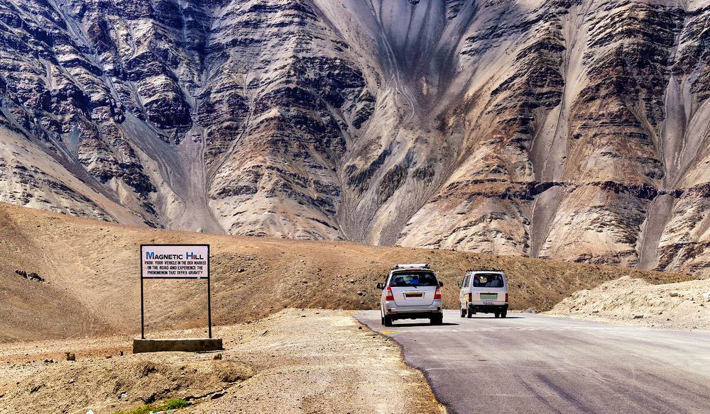 В Ладакхе расположено одно из самых странных мест в Индии и во всём мире. Так называемый «Магнитный холм» ˗ это оптическая иллюзия. В этом месте кажется, что любые объекты, например, автомобили катятся вверх, нарушая законы физики. Но на самом деле они едут вниз.