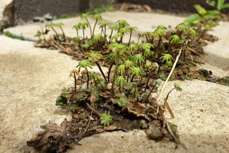 Хрупкий росток пробивается из-под асфальта.