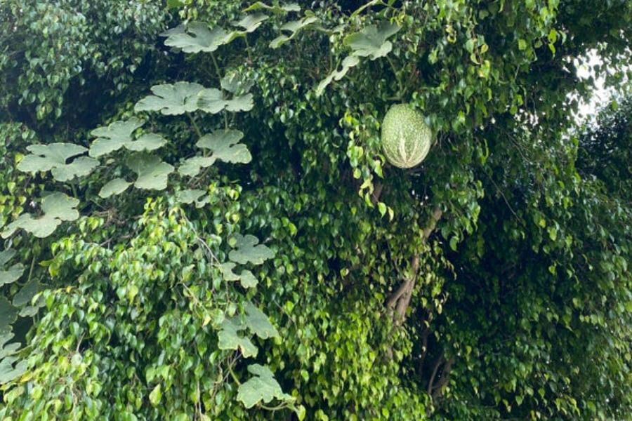 Тыква решила, что она хочет расти на дереве. И выросла на дереве.