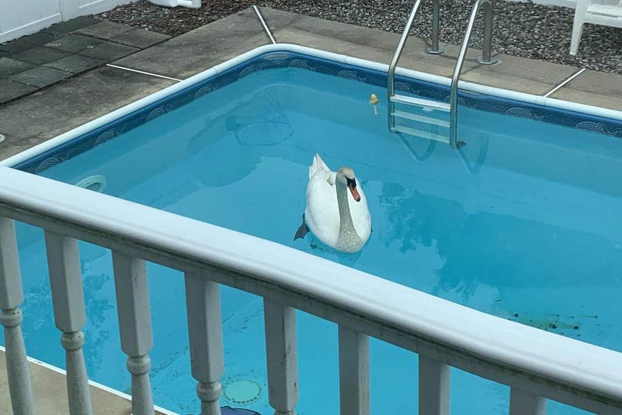Нежданный гость. Мы даже имени его спросить не успели, а он уже плавает в нашем бассейне.