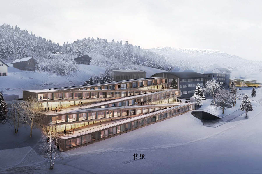 Соорудить лыжный спуск на крыше отеля — отличная идея. И не нужно никаких дорогостоящих подъёмников в горы. Достаточно подняться на крышу отеля, и можно с ветерком мчаться вниз, любуясь заснеженными пейзажами.