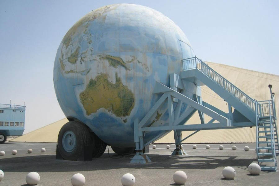 Когда-то домик-планета был построен для передвижения шаха ОАЭ по пустыне. Внутреннее пространство строения вмещает четыре полноценных этажа с четырьмя спальными комнатами и шестью санузлами.
