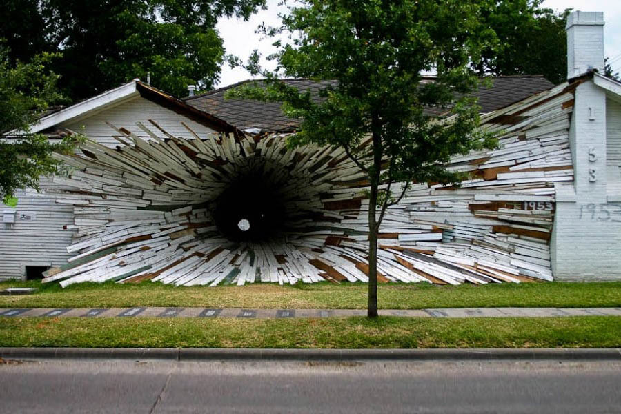 Футуристическая дыра соединила два дома, подлежащих сносу. Она просуществовала недолго, но её фотографии уже больше десяти лет гуляют по просторам интернета и поражают пользователей своим смелым, неординарным дизайном.