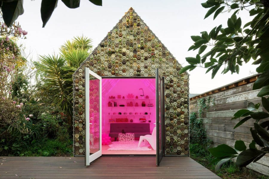 Особенность этого домика заключается в том, что и он, и мебель внутри него напечатаны на 3D-принтере. В фасадной плитке есть специальные отверстия, которые можно наполнить землёй и посадить в них суккуленты.