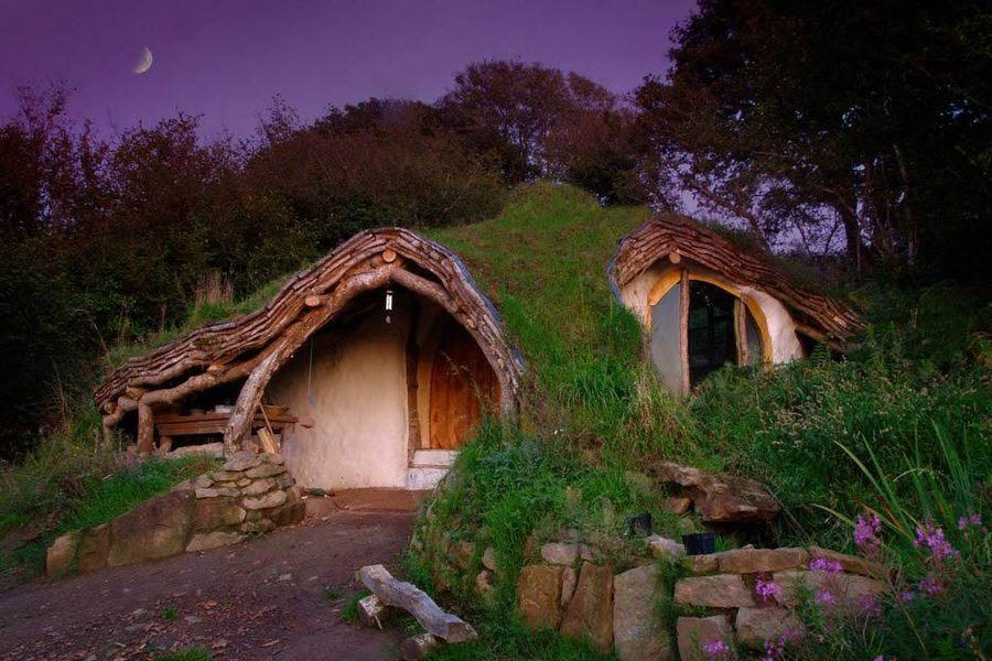 Если вам доводилось читать книгу Дж.Р.Р.Толкина «Властелин колец», то вы наверняка заметили сходство этого жилища, вырытого в холме, с домиком хоббита. Каркас домика сделан из толстых веток, а стены выложены из камня, дерева и глины.