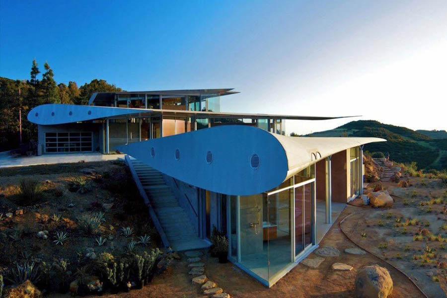 Эффектная крыша, не правда ли? А сделана она из настоящих крыльев списанного самолёта Boeing 747. Чтобы заполучить эти крылья, хозяйка дома выложила кругленькую сумму в $50 тыс.