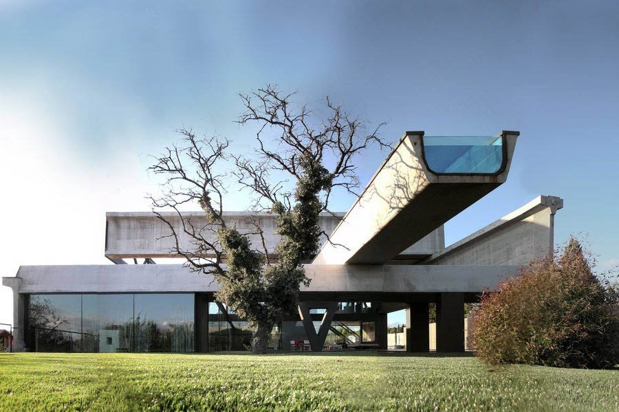 Дизайн-проект этого дома разрабатывался целый год, а на его строительство потребовалась всего неделя. Изюминкой здания является выступающий за его границы бассейн, который словно парит в воздухе.