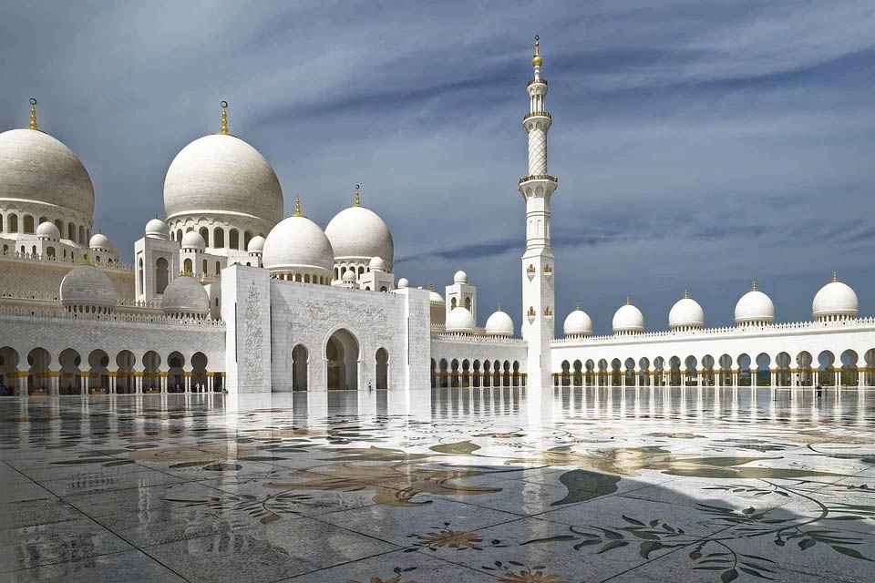 Мечеть располагается в столице ОАЭ — Абу-Даби. Она является одной из шести самых больших мечетей в мире. Общая площадь — больше 22 тысяч квадратных метров, внутри могут поместиться до 40 тысяч человек. Официально здание открыли в 2007 году. Сюда могут попасть не только мусульмане, но все желающие. Однако нужно соблюдать определённый дресс-код: закрыть плечи, колени, а женщинам ещё и голову. Экскурсии по мечети — бесплатные.