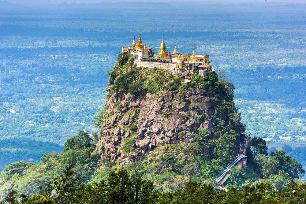 Этот буддистский монастырь располагается в регионе Мандалай, в нескольких километрах от города Багана. Храм стоит на вершине горы вулканического происхождения, на высоте более 1,5 тысячи метров над уровнем моря. Монастырь основали в 19 веке на горе Поупа неслучайно — возвышенность считается священной.