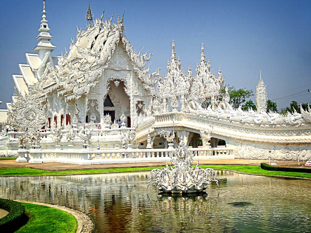 Буддистский храм, который также известен как Белый храм, располагается в нескольких километрах от города Чианграй в Таиланде. Здание построили в 1997 году, оно выполнено преимущественно из белых материалов.