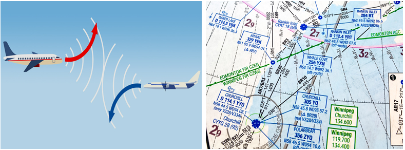 Также самолеты оборудуются датчиками, которые позволяют отслеживать их перемещение. Полёты контролируются системами ADIRS или GPS. Высота для полёта по такими системам составляет от 8800 до 12500 метров. При использовании таких систем, воздушным судам передаются сигналы о наборе высоты или снижении.