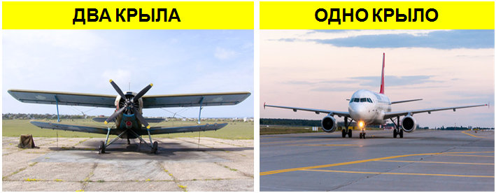 Если крыло расположено по обе стороны фюзеляжа, то это моноплан. По такой конструкции построены практически все пассажирские самолеты. Однако, самолеты с двумя крыльями все еще используются для спортивных соревнований и прочих полётов. Ярким примером двукрылого самолета является АН-2.
