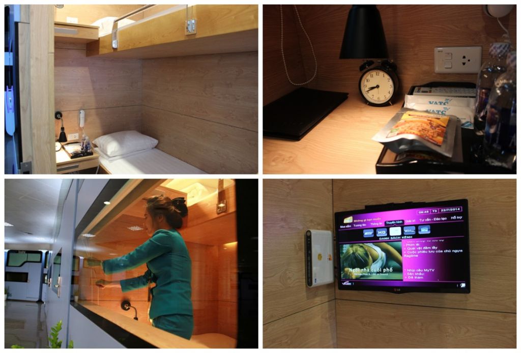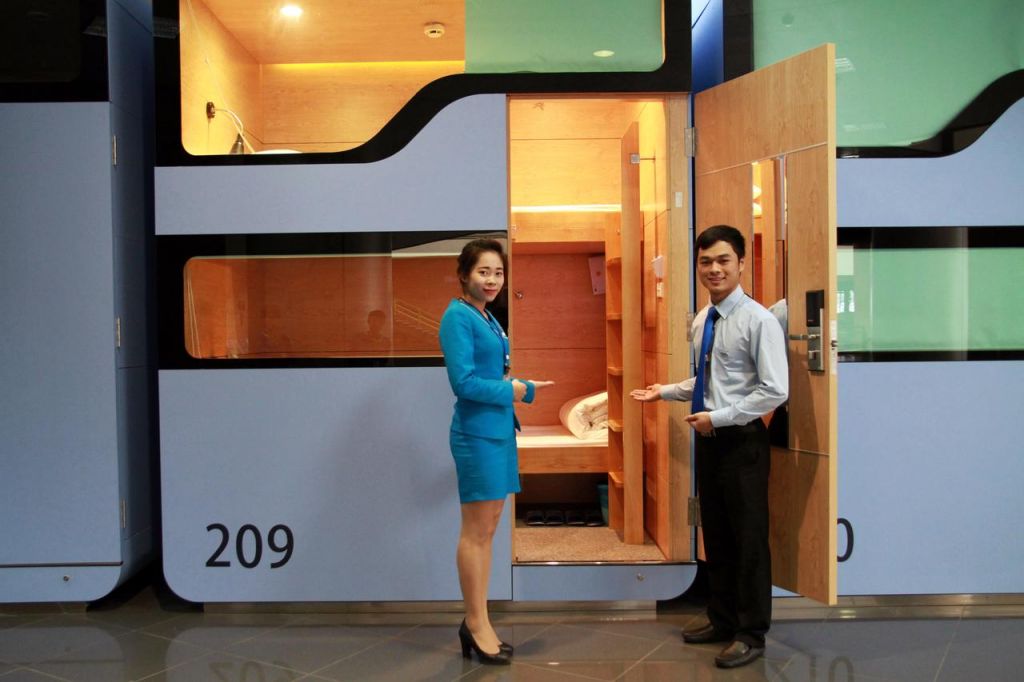 Sleep Pod — вьетнамский вариант двухэтажных капсул для отдыха в транзитной зоне. Площадь капсулы 4 квадратных метра, она оснащена развлекательной техникой, беспроводным интернетом, телефоном, будильником, двумя кроватями, постельными принадлежностями, рабочей зоной, книгой, шторками.