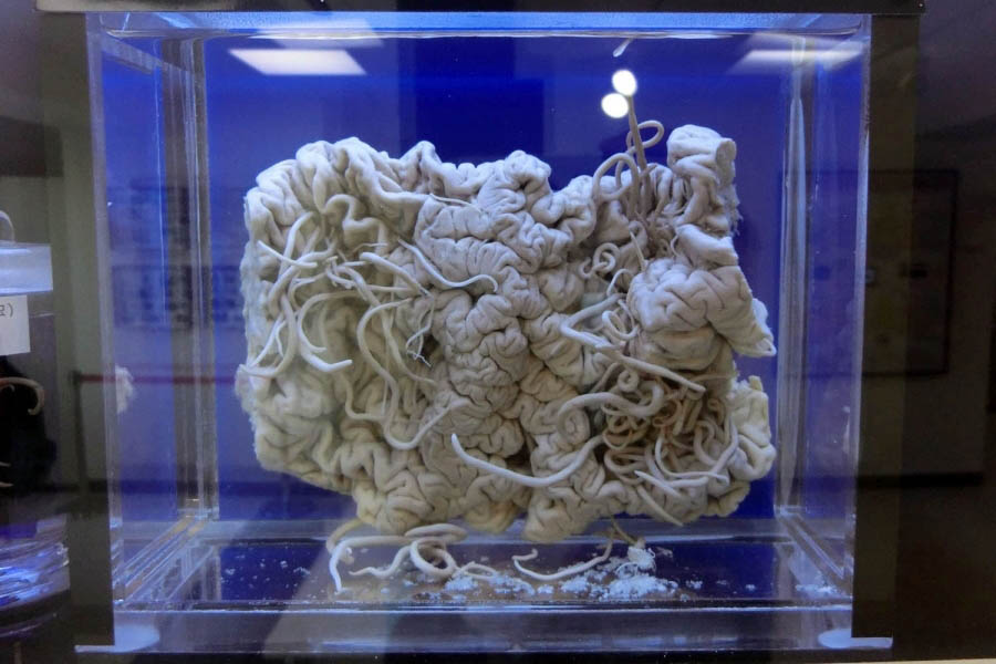 Токийский музей паразитов лидирует по количеству неприятных эмоций, связанных с осмотром его экспозиции. Здесь на стендах, в колбочках и ёмкостях с прозрачной жидкостью представлены самые мерзкие паразиты, которых создала природа, и которые способны размножаться в человеческом организме. В общей сложности здесь собрано около 45 000 червей и ещё примерно 300 других не менее отвратительных паразитов.
