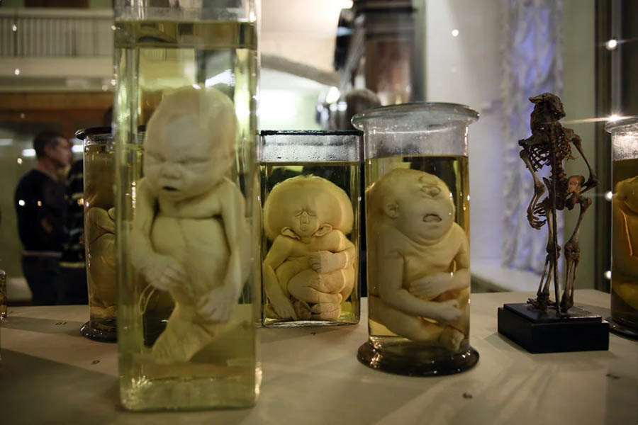 В отдельном зале музея собраны уродцы. Здесь можно увидеть заспиртованных монстров, двуглавых младенцев и мутантов, которые приводят в ужас обывателей.