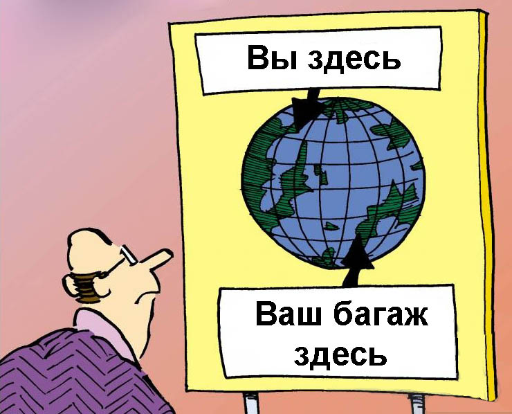 Тут в помещение входит сотрудник службы багажа с чемоданом и подвыпившим клиентом авиакомпании. Пассажир, радостно: