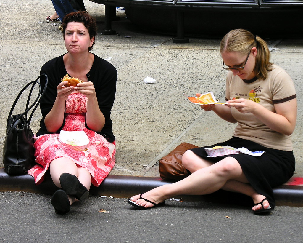 В Японии не принято есть на ходу. Взять с собой гамбургер и шуршать оберткой в метро — не прилично. Конечно, молодое поколение японцев может не придать этому значения. Однако в этой стране очень сильны традиции и нет никакой гарантии, что стаканчик с кофе из ближайшей кофейни не обидит местных жителей.Если хотите избежать неловких моментов, лучше употреблять еду там, где она была куплена. Лапшу или другие блюда уличной кухни можно есть и не в помещении. Но в этом случае лучше стоять на месте или найти, куда присесть.