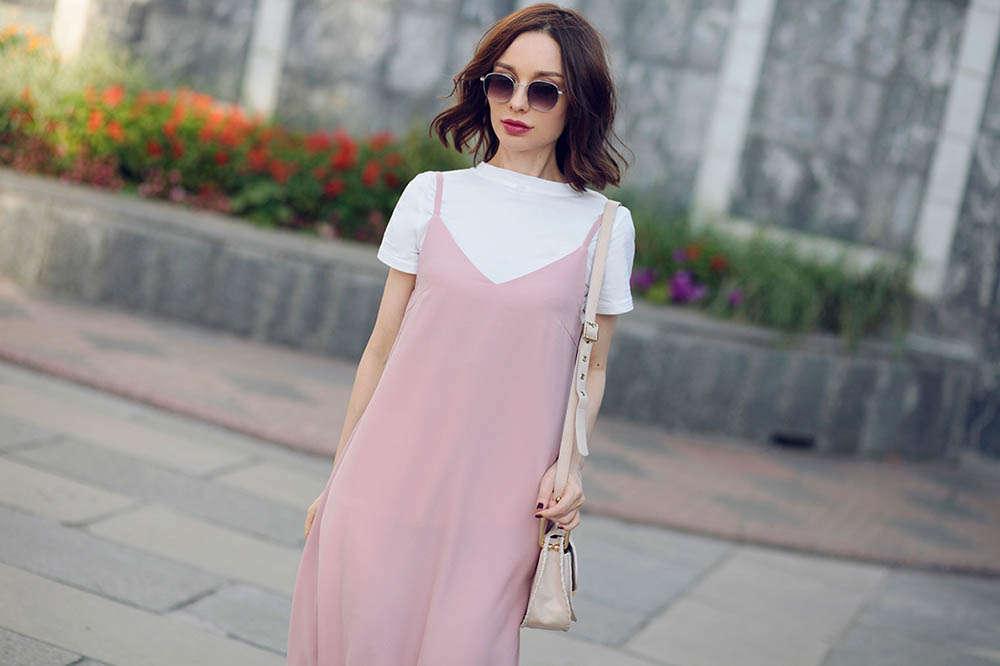 Также обратите внимание на платья-майки или платья-комбинации. Несмотря на свою простоту, они могут стать даже вечерним нарядом, стоит только добавить аксессуары и причёску. Днём — с кроссовками и рубашкой, вечером — с поясом, серьгами и босоножками. Одно платье вместо двух или даже трёх, смотря с чем их комбинировать.