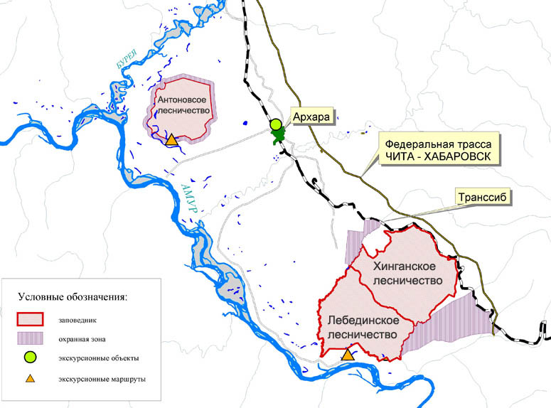 Территория была выбрана удачно — на стыке Архаринской низменности и отрогов Малого Хингана, которая оказалась богатой на растения и животных. Значение заповедника возросло, когда в 70-х годах на его месте обнаружили гнездовья редчайших птиц — японского журавля и дальневосточного белого аиста. Заповедник обрёл статус самостоятельного госучреждения в 1976 году.