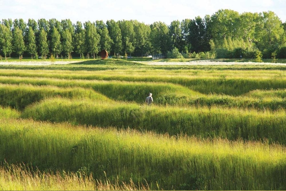 Для воплощения своих планов в реальность, руководство аэропорта обратилось к ландшафтному дизайнеру Полю де Корту из архитектурно-ландшафтного бюро H+N+S. После долгой и кропотливой работы архитектор представил проект уникального ландшафтного парка протяжённостью 36 км. В состав парка включена серия из 150 симметричных холмов высотой около 2 м. Расстояние между возвышенностями равно длине шумовой волны от самолёта — 10 м.