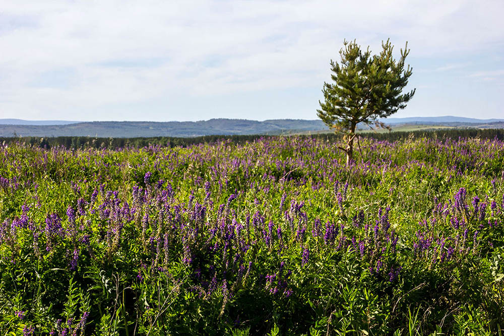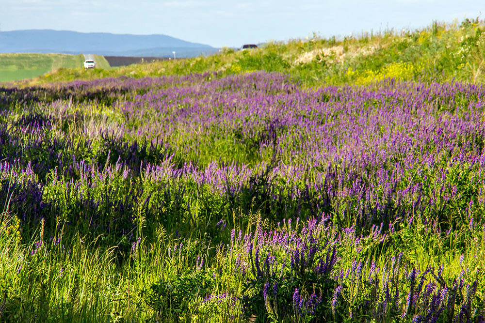 Но, чтобы увидеть такую красоту, необязательно ехать в Европу. Удивительные пейзажи можно найти совсем рядом. Посмотрите на фото ˗ луга с цветами расположены вдоль дороги Миасс-Учалы на территории Башкортостана. Правда, это не лаванда, а мышиный горошек ˗ выглядит он ничуть не хуже.
