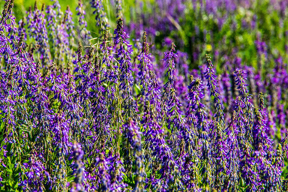 Лучшее время для фотосессии ˗ вторая половина мая-июнь. В это время цветёт мышиный горошек.