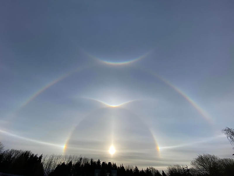 Дуга Парри или гало — это одно из самых редких погодных явлений. Выгнутые и вогнутые дуги радуги получаются, когда зимой в воздухе появляется много кристаллов льда.