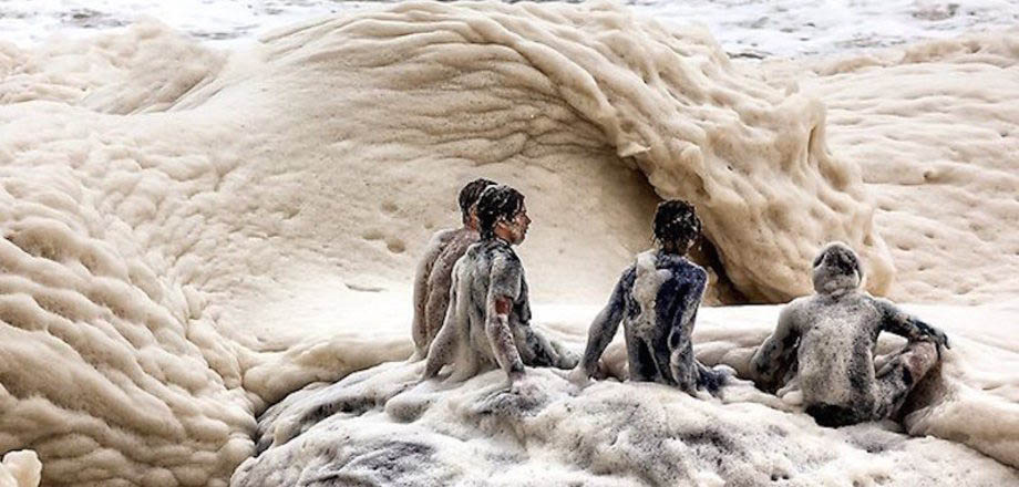Появление густой коричневой морской пены ˗ это редкое явление. Море становится похожим на гигантскую чашку капучино. Это происходит из-за того, что в воде накапливается песок, водоросли, отходы и соль. Штормовой ветер, подобно миксеру, взбивает всё это, и получается плотная пена, которая заполняет побережье. Чаще всего явление наблюдают в Южной Африке и Австралии.