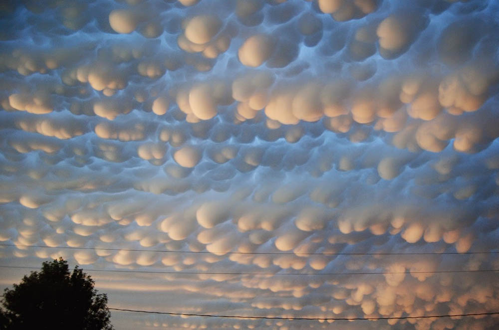 А это более редкое явление. Пупырчатые или вымеобразные облака образуются, когда облако попадает под слой сухого воздуха. Они предвещают приход тропического циклона. Чаще всего увидеть это необычное явление можно в Австралии.