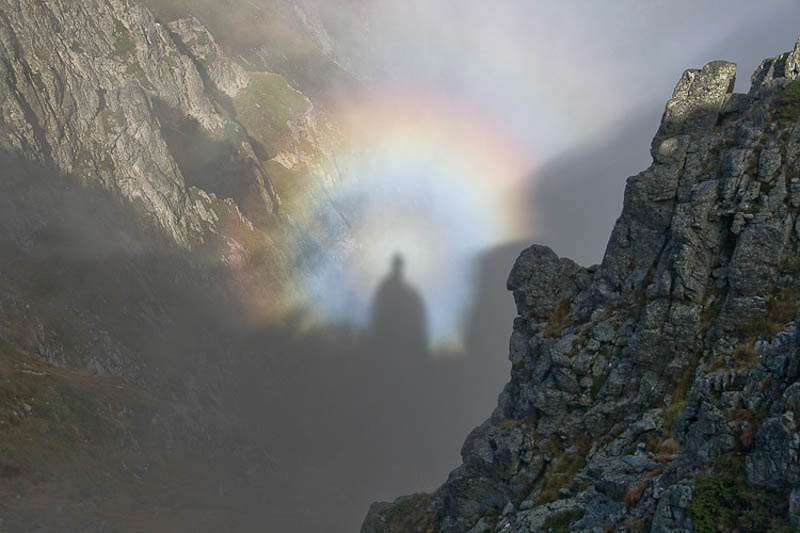 А ещё эти места знамениты тем, что на вершине горы многие видели знаменитого Брокенского призрака. Погодные условия при подъёме в гору во многом подчеркивают мистическую и мрачную славу этого места. Почти 300 дней в году здесь висит плотный туман, а температура почти всегда заставляет закутаться поглубже в шарфы и свитера. В этом тумане люди видят загадочные тени и силуэты. Скептики же утверждают, что Призрак Брокена ˗ это тень, которую человек отбрасывает прямо на взвесь водяного пара. Из-за этого тень становится больше. Там же можно увидеть интересное явление: человек окружается радужной аурой — это так называемый «спектр Брокена», который возникает в результате дифракции солнечного света. Оптические иллюзии, загадочные истории, туман и холод... В общем, гора Брокен и правда может напугать.