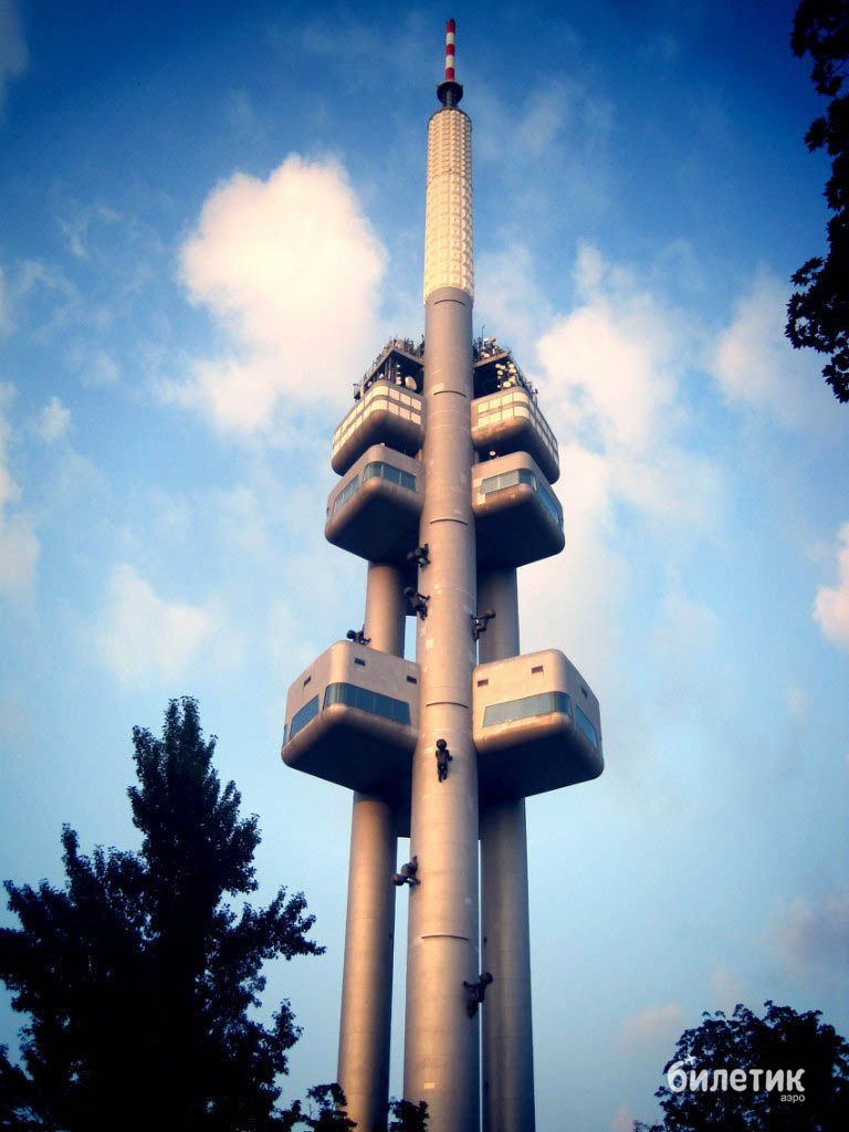 Самая высокая и самая спорная достопримечательность Чехии. 216-метровое строение часто включают в списки самых уродливых построек. В 2000 году на её опоры поместили девять скульптур младенцев, после чего башня стала более привлекательна для туристов. Но главное её достоинство — смотровая площадка на высоте 93 метра, оборудованная подвесными креслами и телескопами. Также здесь есть ресторан и отель.