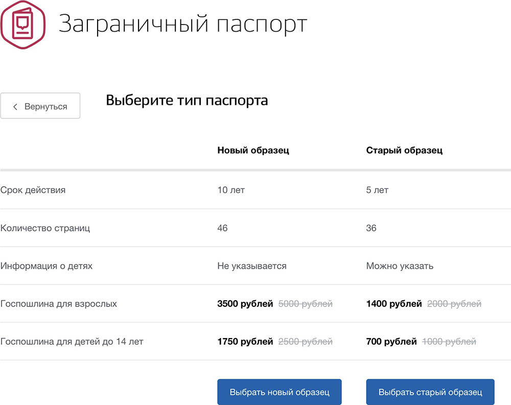«Загранпаспорт гражданина РФ». В последнем разделе следует выбрать типа загранпаспорта — нового или старого образца.