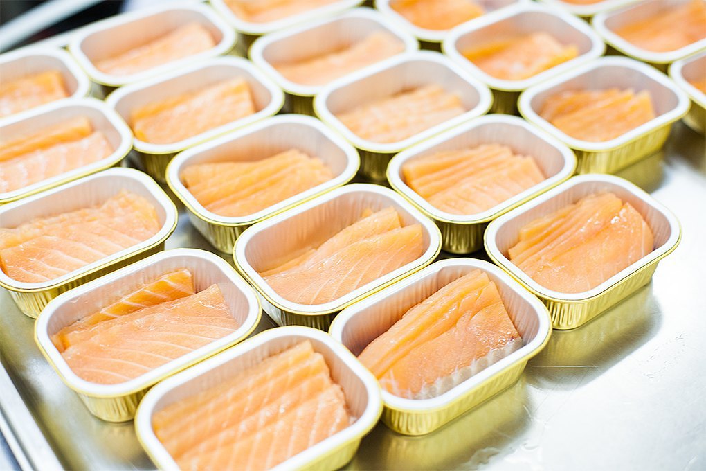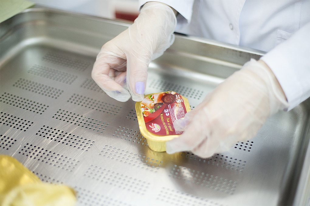Готовые блюда помещаются в ланч-боксы, которые заклеиваются фирменной этикеткой.На каждую из коробочек с едой приклеивается сертификат кошерности.