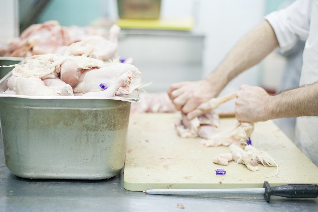 После забоя мясо проверяется на 30 показателей здоровья. Если продукт соответствует нормам, он отправляется в воду комнатной температуры. Затем помещается на большую доску и посыпается крупной солью. Соль впитывает оставшуюся кровь, которую нельзя употреблять по кашруту.