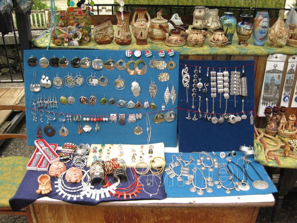 Шерстяные носки, рукавички, шарфы и прочие вязаные предметы гардероба; бижутерию и керамику, сувениры из ракушек, поделки из можжевельника и самшита, эвкалиптовый веник; приправы и немного местных продуктов.
