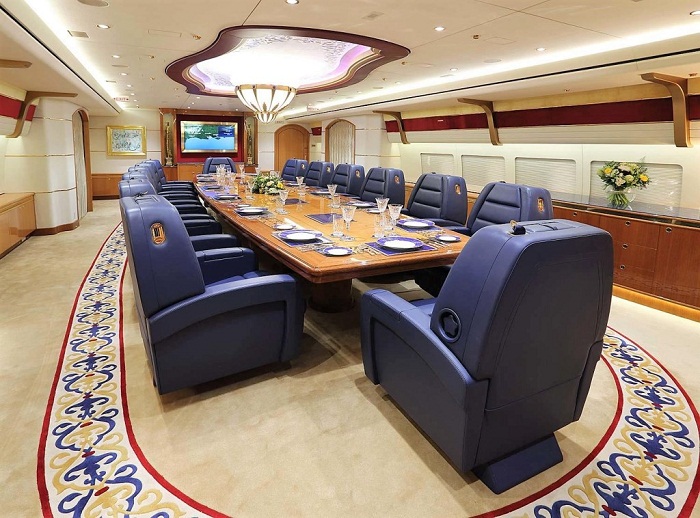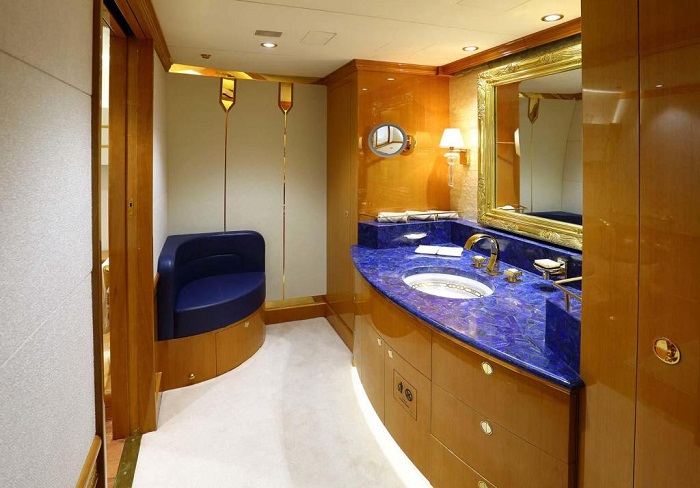 Шикарное воздушное судно может разместить 76 высокопоставленных пассажиров и членов их семей, а обслуживает все это великолепие 18 членов экипажа и прислуга.