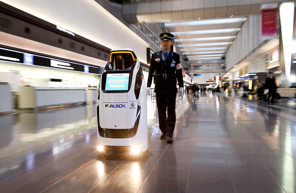 Роботы-помощники активно используются в аэропортах Европы и Азии. К примеру, в Гатвике, можно обратиться к услугам робота-парковщика. В аэропортах Японии активно используют роботов. В воздушной гавани Токио, например, патрулирует периметр робот Reborg-X, а Relay самостоятельно перевозит грузы из одной точки в другую.