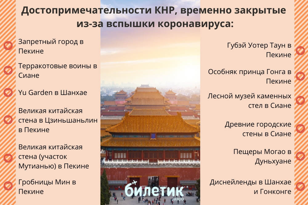 Накануне празднования китайского Нового года объявили о временном прекращении деятельности запретный город в Пекине и Диснейленд в Шанхае. Точная дата возобновления работы пока неизвестна.