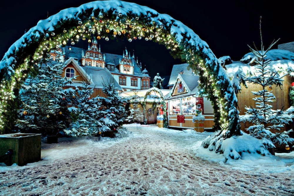 Если вы хотите окунуться в настоящую рождественскую сказку — поезжайте в Германию. Немцы свято чтят старинные традиции и делают всё возможное, чтобы создать вокруг себя праздничную атмосферу: красиво украшают дома, включают на улицах иллюминацию, проводят весёлые ярмарки, на которых можно купить карамельные яблоки, имбирные пряничные домики, штоллены и ароматный глинтвейн. Традиционными праздничными блюдами в Германии являются жареный гусь, пироги, суп в горшочке айнтопф. Из напитков немцы предпочитают пунш, пиво и шампанское. На десерт подают фрукты и мороженое.