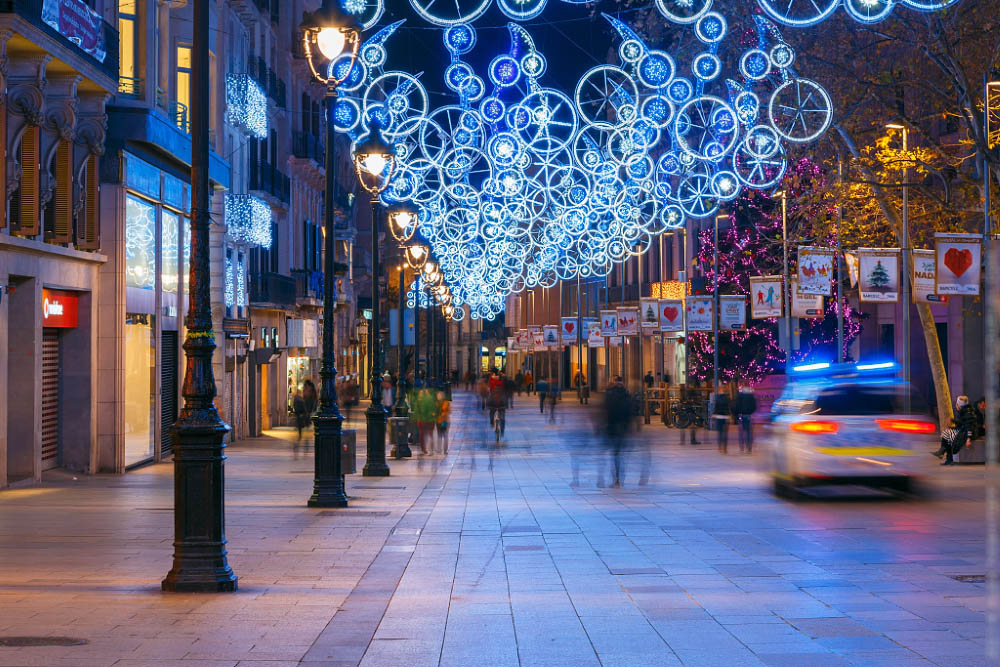 В канун Нового года самые масштабные гуляния происходят в каталонской столице, Барселоне. На площади Испании для местных жителей и гостей города проводятся различные шоу и развлекательные мероприятия, а в полночь небо взрывается разноцветным фейерверками. У горы Монжуик в 23:00 начинается грандиозное шоу поющих фонтанов, в котором сливаются вода, музыка и свет. В прибрежной зоне города под бой курантов гаснет и зажигается зеркальный небоскрёб Агбар, на котором впоследствии начинается световое шоу.