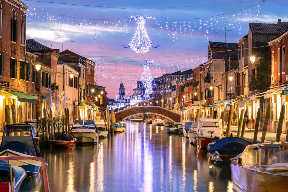 Итальянцы очень любят Новый год и празднуют его с размахом. Праздничная Венеция выглядит просто фантастически. Миллионы огней, отражающихся в венецианских каналах, придают городу лёгкость и невесомость. Кстати, зимой в Венеции не бывает морозов, поэтому можно покататься по каналам на гондолах. В конце декабря повсеместно открываются рождественские ярмарки, на которых можно купить уникальные вещицы из муранского стекла по очень выгодным ценам.