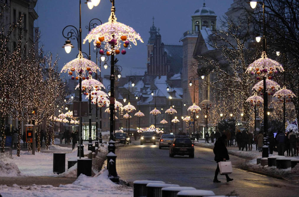 Молодёжь предпочитает не засиживаться дома, а выбирается в ночные клубы или приобщается к массовым гуляниям на площадях и улицах городов. В канун нового года повсеместно проводятся балы, маскарады и прочие увеселительные мероприятия. Центром новогодних гуляний становится Варшава. Улицы столицы вспыхивают яркой иллюминацией, а в витринах магазинов и кафе появляются праздничные инсталляции. Главную ёлку устанавливают в Старом городе, на Замковой площади. В новогоднюю ночь сюда стекаются толпы горожан, чтобы под бой курантов выпить шампанского, поздравить друг друга с праздником и насладиться видом праздничных салютов.