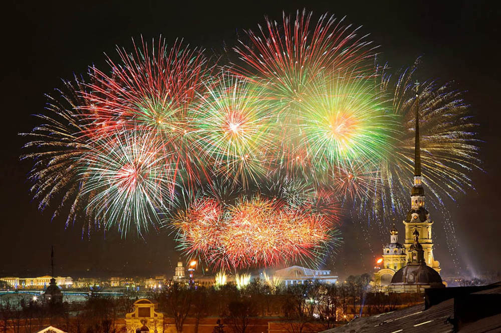 Жители и гости Питера отмечают Новый год с размахом. Центром праздничных гуляний является Дворцовая площадь, на которой устанавливают огромную сверкающую ёлку. Праздничную атмосферу Петербурга великолепно дополняют проводимые на площади концерты и световые шоу. Масштабный салют, который запускают одновременно с 35 площадок, окрашивает акваторию Невы в яркие цвета.