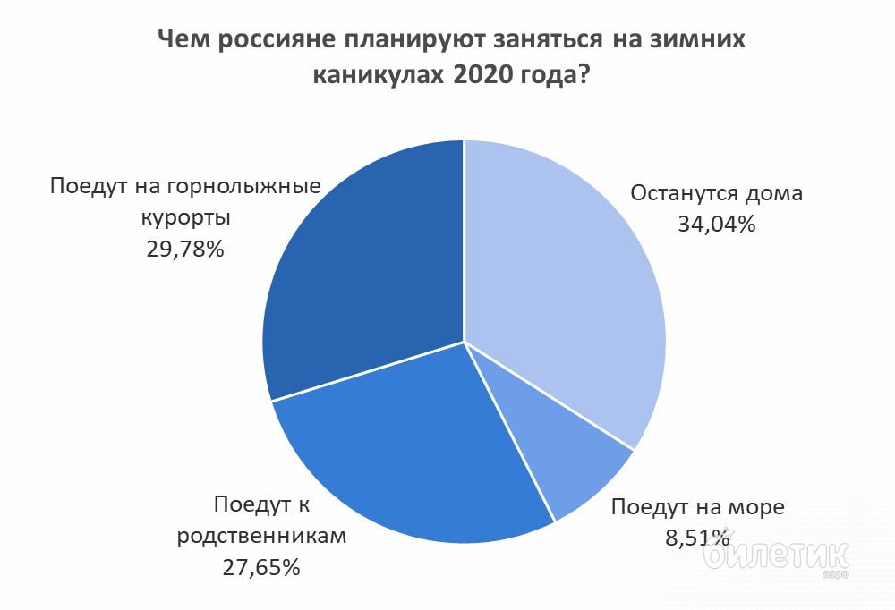Согласно нашему опросу, 61,69% наших читателей решили провести новогодние каникулы с друзьями и родственниками. Из них 34,04 % проголосовавших останутся дома, а 27,65 % отправятся в родной город, к родителям. Так что, можно смело сказать, что зима для россиян — это время собраться в тёплом семейном кругу.Остальные 38,31% читателей отправятся навстречу приключениям. Из них 29,78% уже купили авиабилеты на горнолыжные курорты и ещё 8,51% — на море.