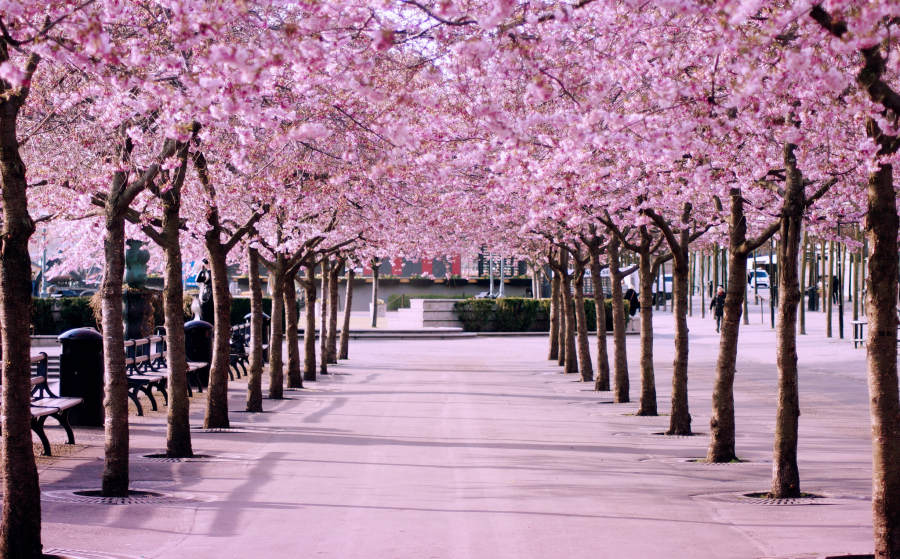Весной в Стокгольме расцветает вишнёвая аллея. Деревца покрываются розовой дымкой и источают тонкий цветочный аромат, который хочется вдыхать полной грудью.