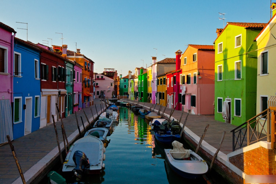 Бурано — самый красивый остров Венеции. Все дома на острове окрашены в яркие цвета. С берега панорама острова напоминает страницу из раскраски, которую ребёнок разрисовал яркими фломастерами.
