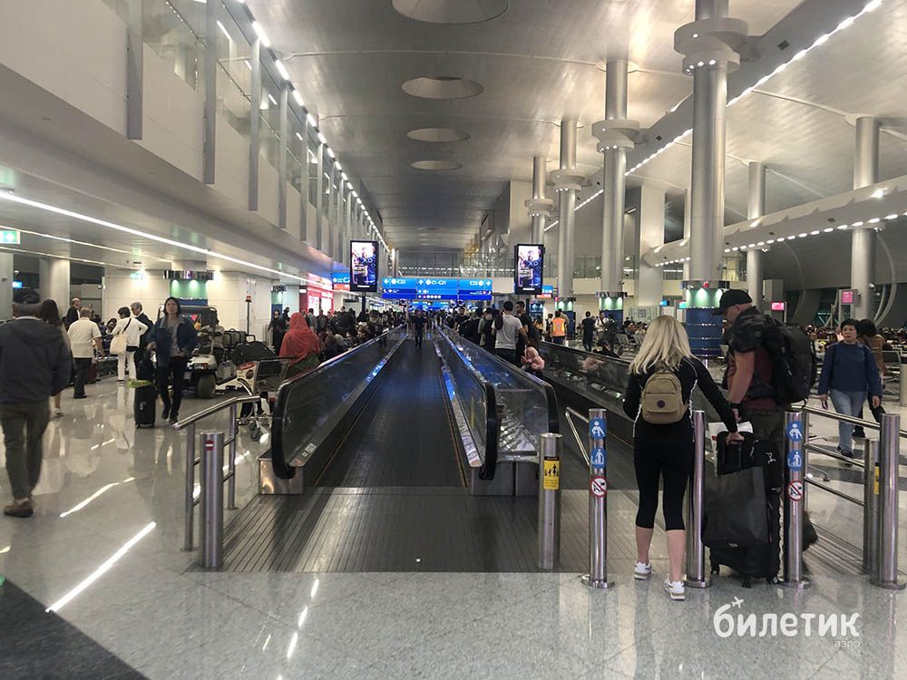 Чтобы быстрее перемещаться по терминалу, вы можете воспользоваться мини-автомобилем «багги» или эскалаторной лентой. Это бесплатно. Сначала мы ходили по аэропорту просто пешком, но по возвращении, когда сильно устали, оценили второй метод передвижения. Конечно, если бы заранее было известно о бесплатных машинках, то мы бы и туда с удовольствием запрыгнули.